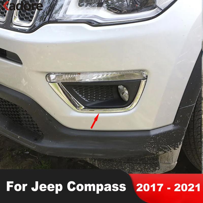 For Jeep Compass 2017 2018 Chrome Front Fog Light Lamp Cover Trim Foglight Eyebrow Eyelid Trims Car Accessories