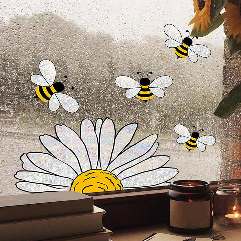 Sunflower Bee Window Clings Floral Window Stickers for Living Room Home