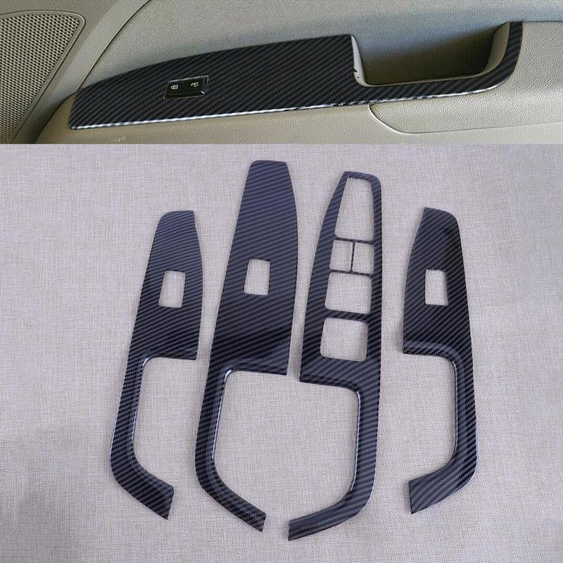 Car Black Carbon Fiber Style ABS Window Lift Switch Panel Trim Cover Set Fit for Hyundai Elantra 2017 2018 LHD