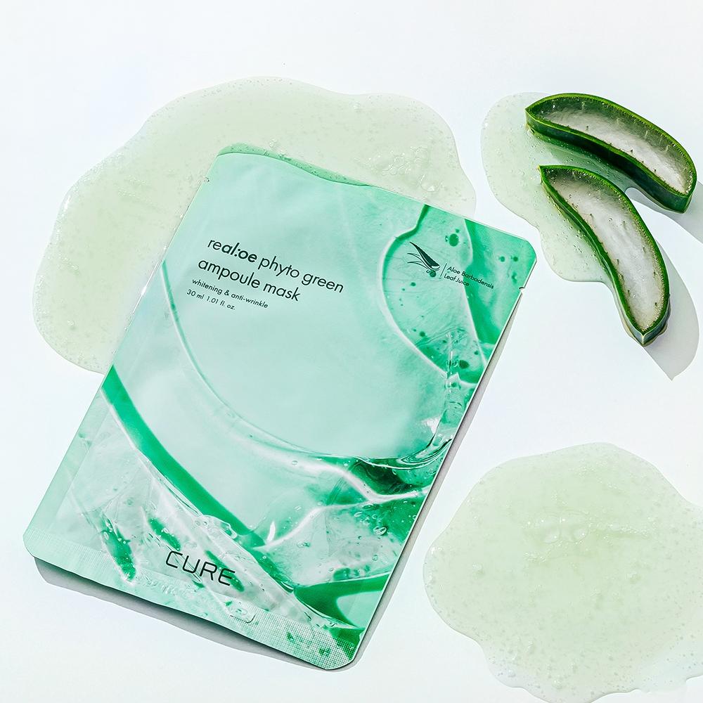 Cure Kim Jeong-mun Aloe Cure Phytogreen Ampoule Mask 1 Blatt ist eine Tuchmaske, die Komponenten aus Aloe-Exosomen in Nanogröße enthält, die das gesamte Gesicht reichhaltig mit Feuchtigkeit versorgen.. Es enthält 30 % frischen Aloe-Vera-Blattsaft, verarbeitet aus Aloe, die 1.000 Tage lang auf der Insel Jeju angebaut wurde, und seine Hautaufnahmefähigkeit wurde im Vergleich zu bestehenden Produkten um mehr als das Zweifache verbessert.