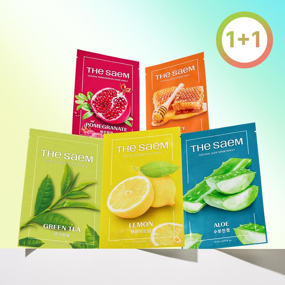 The Saem [1+1] The Saem Natural Masken-Packung 1 Blatt (Aloe/Zitrone/Grüner Tee/Honig/Granatapfel 5 Sorten zur Auswahl) ist eine Tuchmaske mit natürlichen Inhaltsstoffen, die der Haut Feuchtigkeit spendet und beruhigende Wirkung verleiht. Die fünf erhältlichen Typen gehen auf unterschiedliche Hautbedürfnisse ein.: Aloe zur Hydratation und Beruhigung, Zitrone zur Aufhellung, Grüner Tee für antioxidative Wirkung, Honig zur Nährung und Granatapfel für strahlende Haut.
