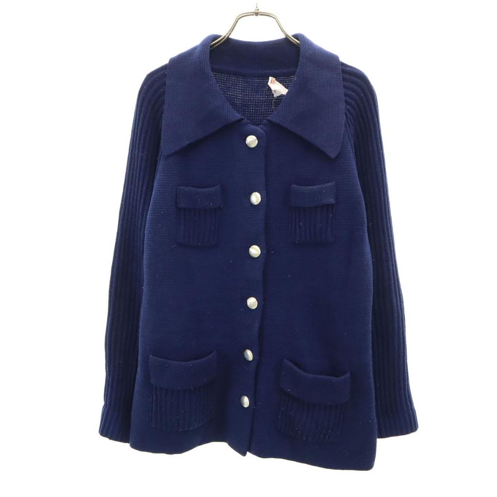 Dies ist eine Strickjacke von Montgomery Ward aus den 1970er Jahren.. Es hat durchgehend Pilling, Löcher auf der linken Brust und am linken Ärmel, leichte Abnutzung am Kragen, einen ausgefransten Markenanhänger und an einigen Stellen Laufmaschen.. Bitte haben Sie vor dem Kauf Verständnis dafür, dass es sich um einen gebrauchten Artikel handelt.