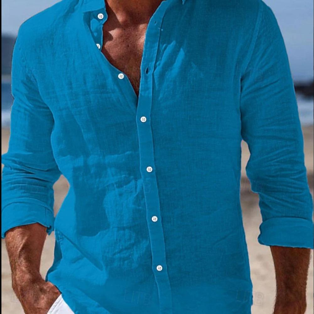 Herrenhemden Frühling/Sommerhemden Strandbekleidung Button-Down-Hemden Einfarbig Urlaubs-Casual Langarm mit Kragen