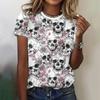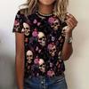 Skelettblumenmuster T-Shirt für Damen Tag der Toten 3D-Druck Kurzarm Sommer Locker T-Shirts Rundhalsausschnitt Oberteile Streetwear Tees
