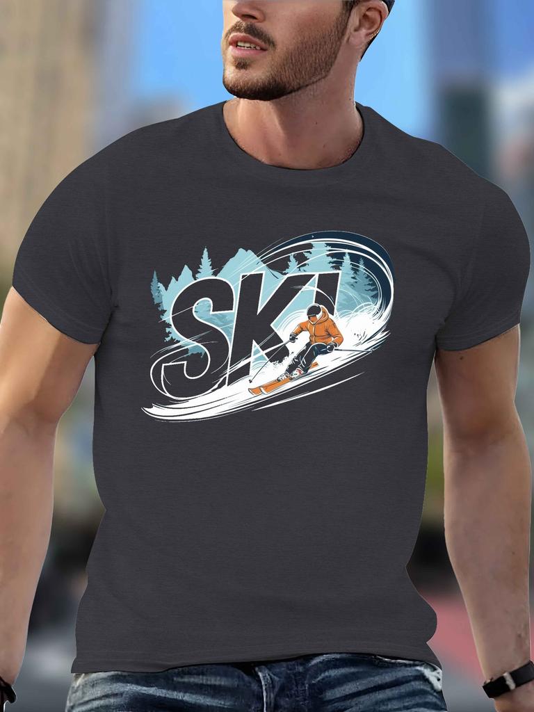 Ski Skier Graphic TShirt Men Casual Cotton Short Sleeve Tee Activewear