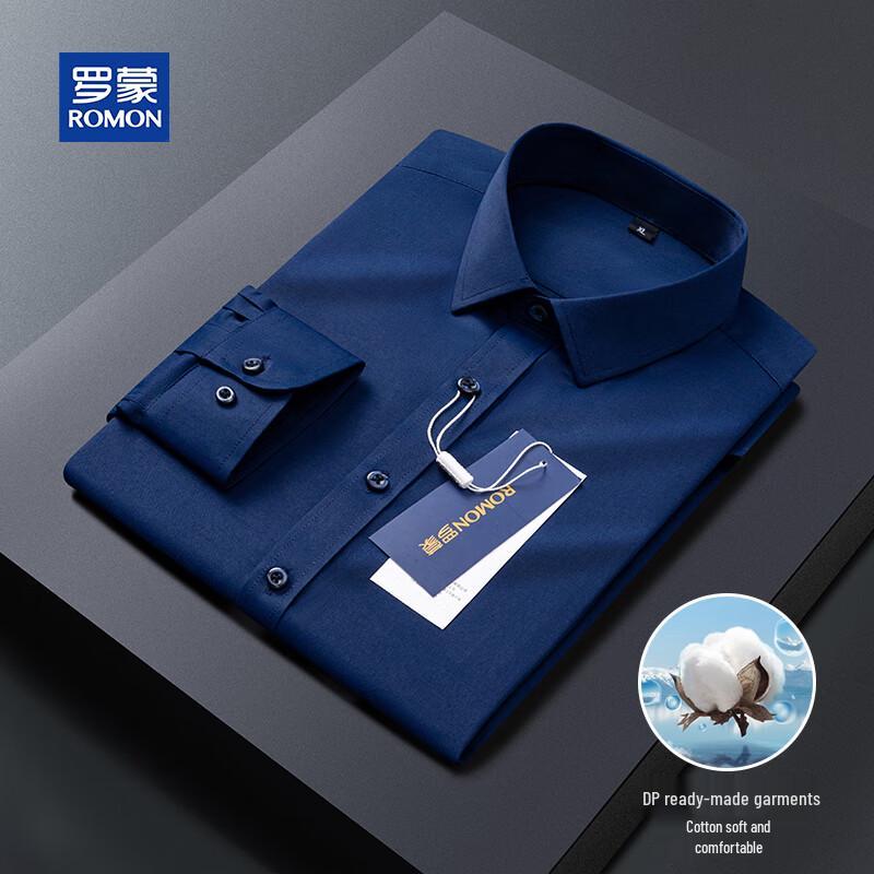 ROMON Men's Long Sleeve Solid Business Casual Shirt