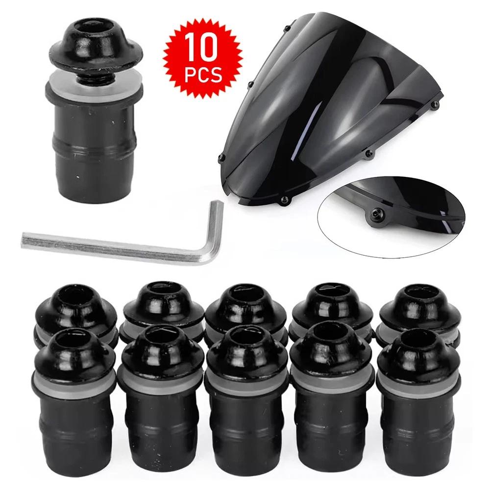 10pcs Universal Motorcycle Windscreen Bolt Washer Kit M5x16mm Black Aluminum Nut Replacement For SUZUKI KAWASAKI
