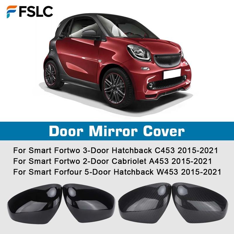Car Decoration Door Mirror Cover For Smart Fortwo Forfour 453 2015- Car Rearview Accessories Carbon Fiber Glossy Black