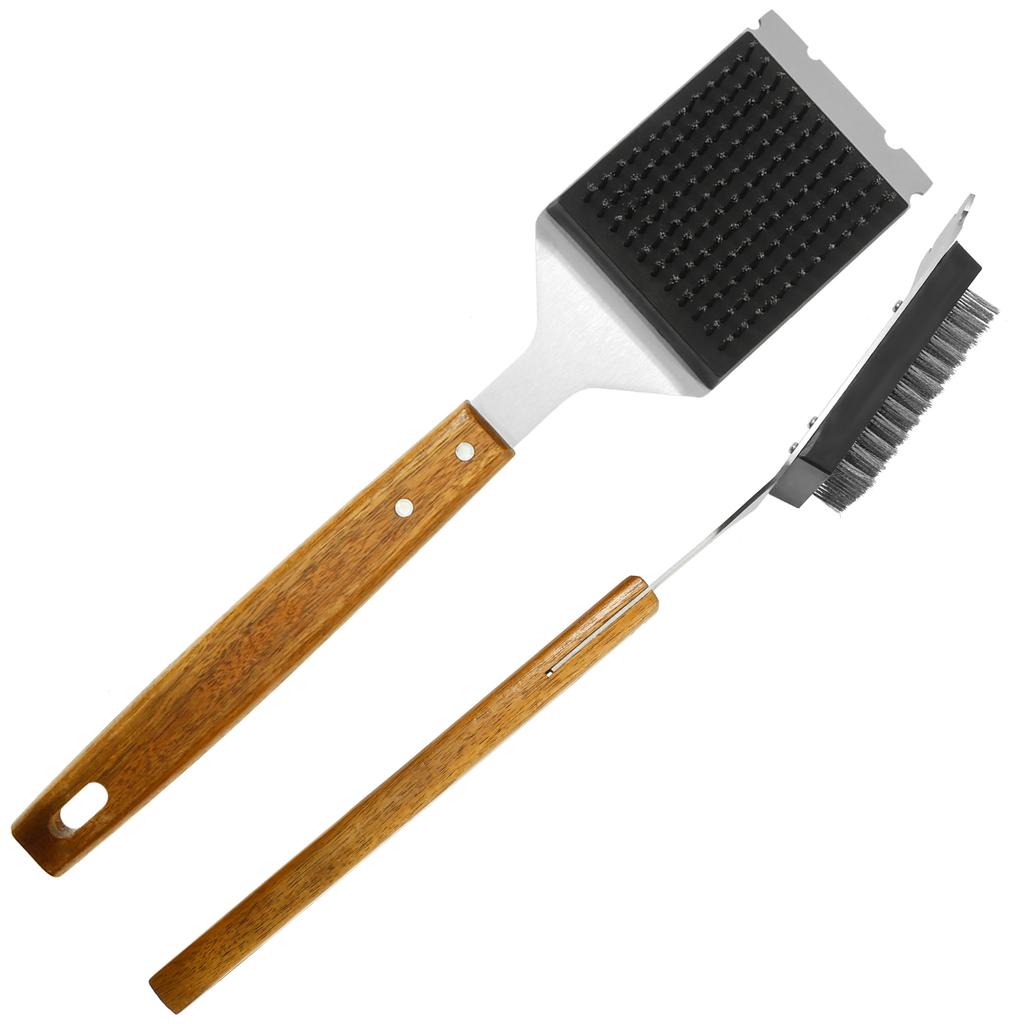 2 Stück 42cm Grillreinigungsbürsten-Set BBQ Barbecue Edelstahl Langer Griff Reinigungsschaber Antihaftbeschichtung Tolle Grillbürste