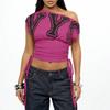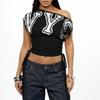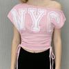 Europäisches und amerikanisches Sommer schräges Schulter off-shoulder Buchstaben bedrucktes taillienbetontes Tunnelzug Falten Top