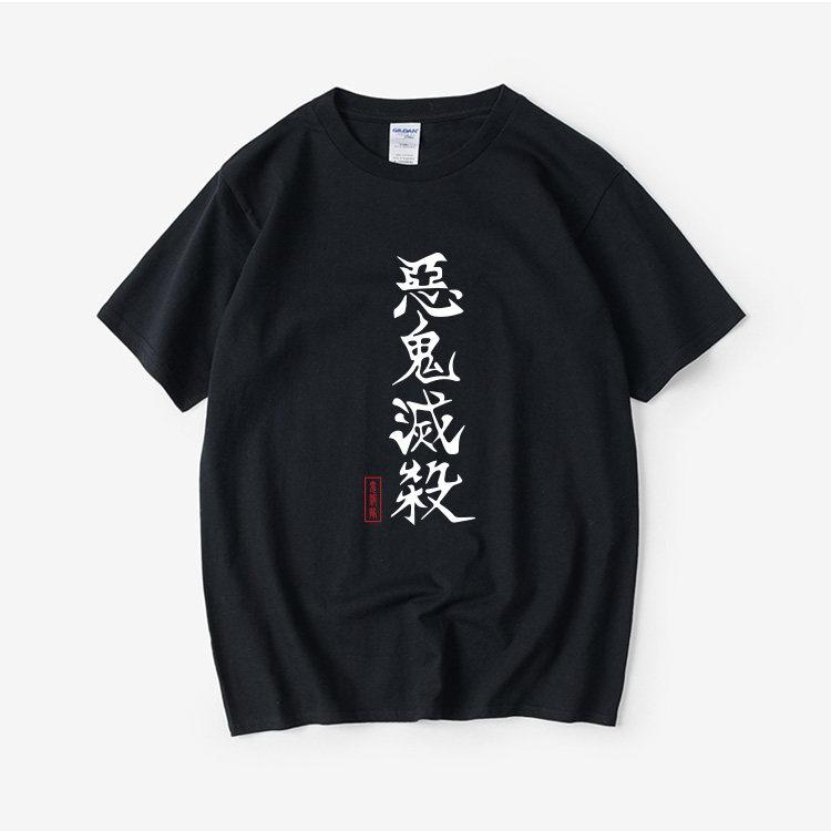 Demon Slayer Vertikaler Kanji-Druck T-Shirt Herren Damen Harajuku Streetwear Anime Grafik Baumwolle T-Shirt Übergroß Kurzarm Tops