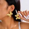 Golden leaf fan texture earrings creative exaggerated retro flower heavy metal wind stud earrings