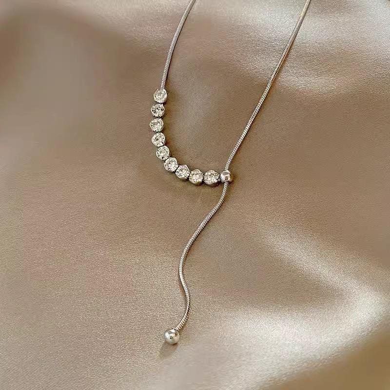 Silver zircon necklace light luxury niche pendant accessories hip hop fashion sweater chain