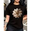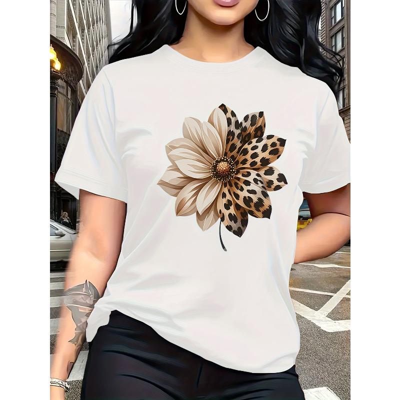 European Size Women's Short Sleeve T-Shirt with Leopard-Spot Floral Print Round Neck Blouse -Suitable for Travel, Vacation & Everyday Outfits