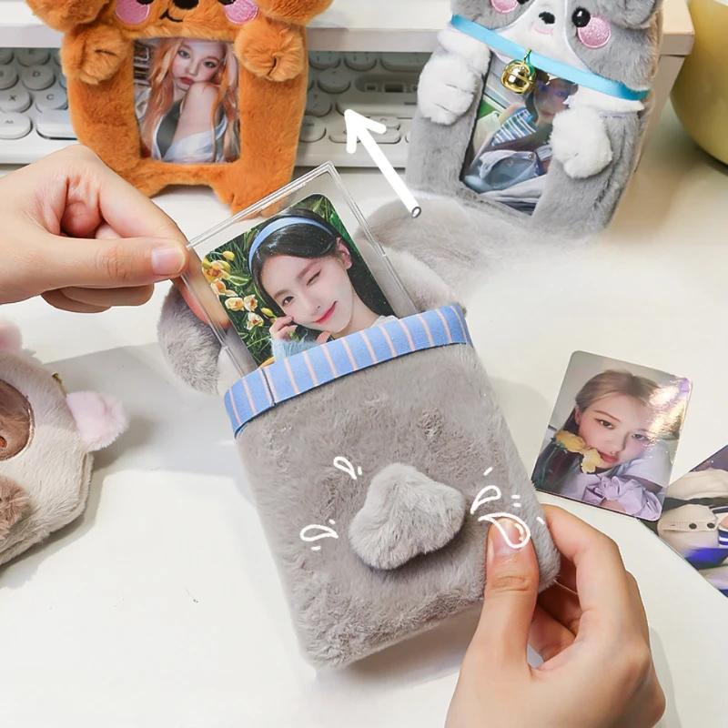 Süßer Welpen Plüsch Kartenhalter Tier Serie 3 Zoll Kpop Fotokarten Hüllen Flauschiger Koala Fotokartenhalter für Damen Karten Display