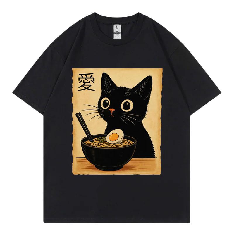 Funny Cat Ramen Graphic T Shirts Men Women Clothing High Quality Fashion Tshirts Summer Casual Short Sleeve T Shirt Streetwear