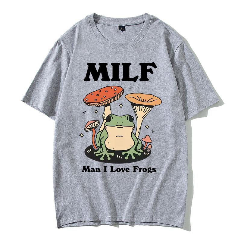 Lustige MILF Mann Ich Liebe Frösche Meme Grafik T-Shirts Humor Froschliebhaber T-Shirts Herren Damen Mode Sommer Kurzarm T-Shirt