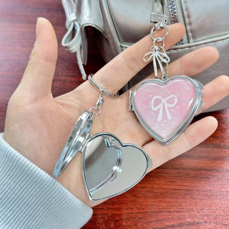 Y2K Trendiges Herz Klappspiegel Schlüsselanhänger Süß Cool Metall Schlüsselanhänger Make-up Mini Spiegel Mode Tasche Anhänger Mädchenhafte Geschenke