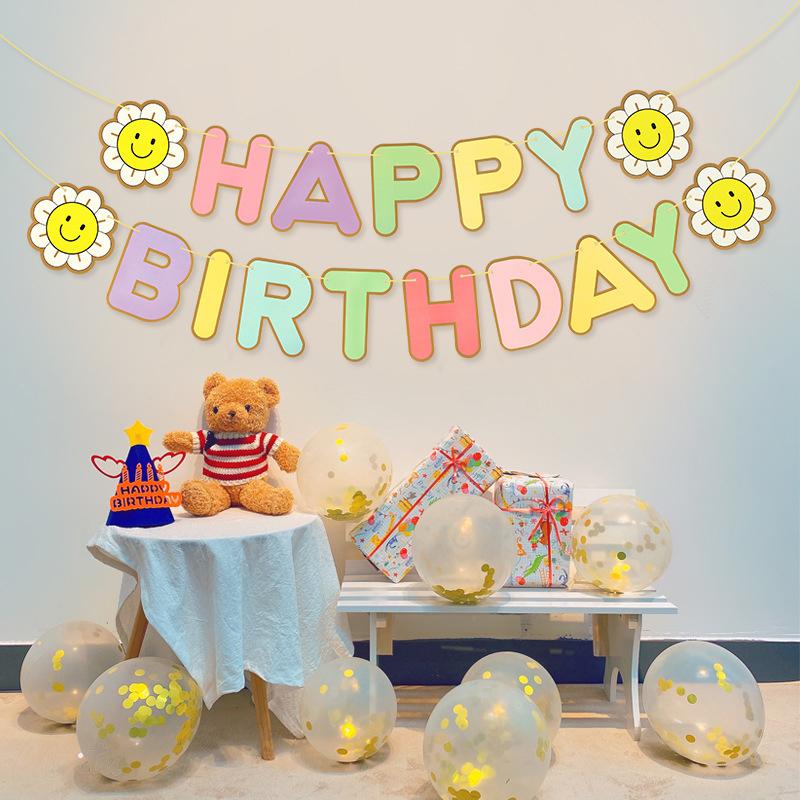 1-5 Stück Geburtstagsflagge Partybanner Blume Für Zuhause Zimmer Girlande Kinderflagge Happy Birthday Party Atmosphäre Dekorationen Zubehör