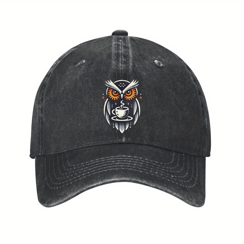 Coffee Owl Graphic Baseball Cap Vintage Washed Cotton Adjustable Unisex Casual Hat