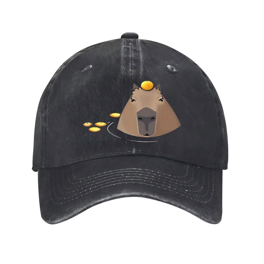Capybara with Orange Print Baseball Cap Unisex Cotton Adjustable Snapback Cute Animal Face Casual Sun Hat