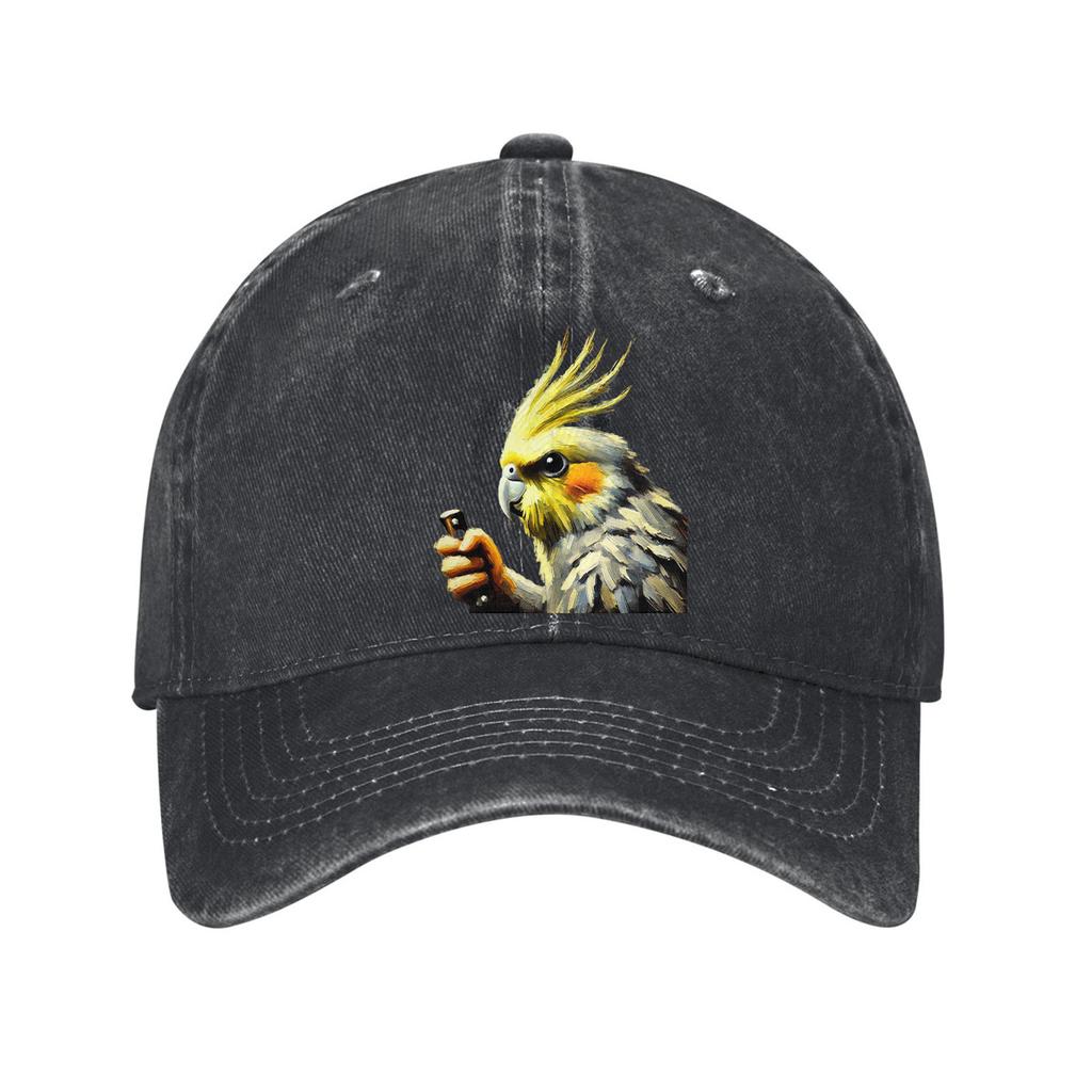 Cockatiel Bird Holding Small Object Washed Cotton Baseball Cap Casual Outdoor Adjustable Dad Hat
