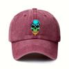 Neon Skull Print Baseball Cap Washed Denim Style Adjustable Streetwear Fashion Outdoor Casual Hat