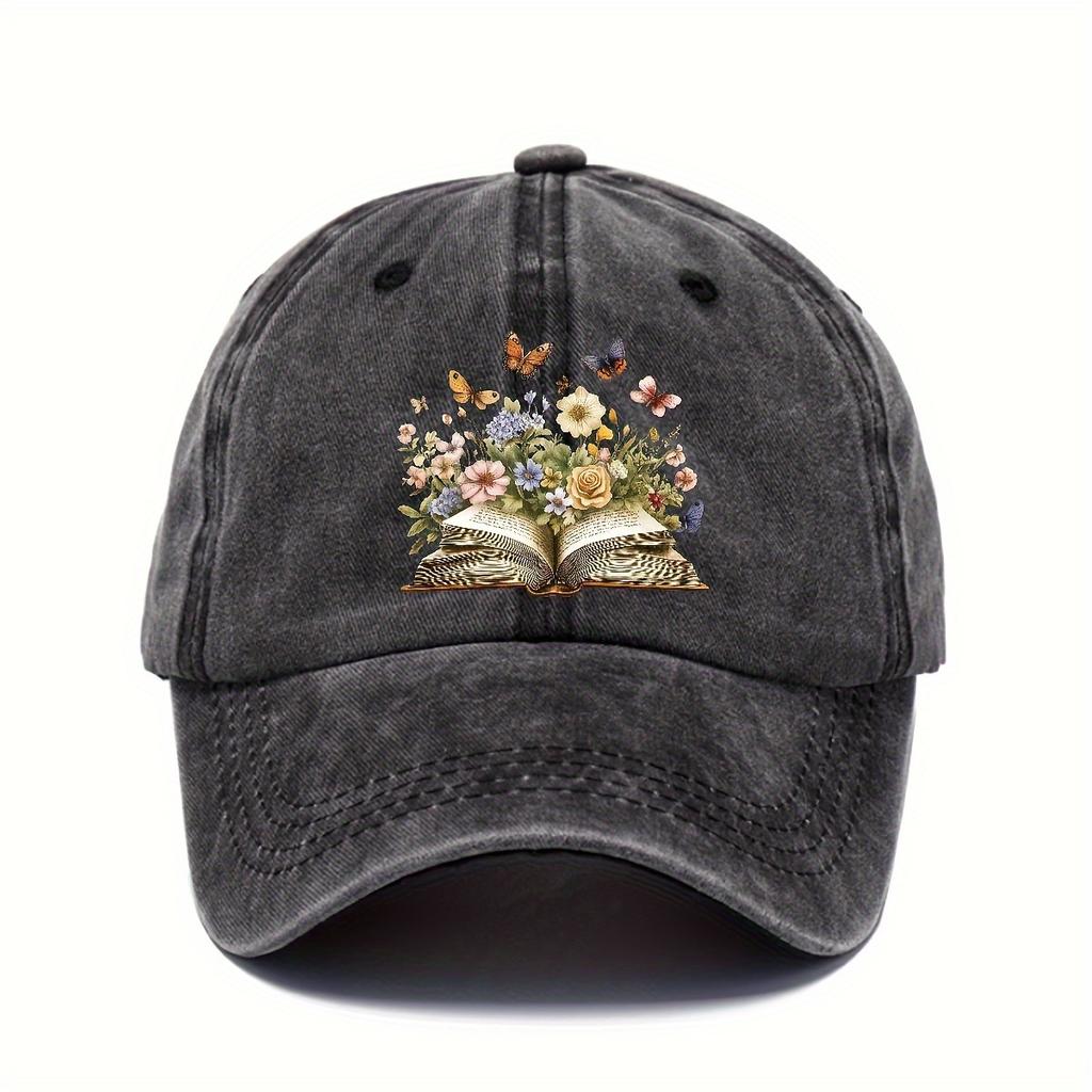 Floral Butterfly Open Book Baseball Cap Vintage Washed Adult Casual Adjustable Snapback Hat Unisex