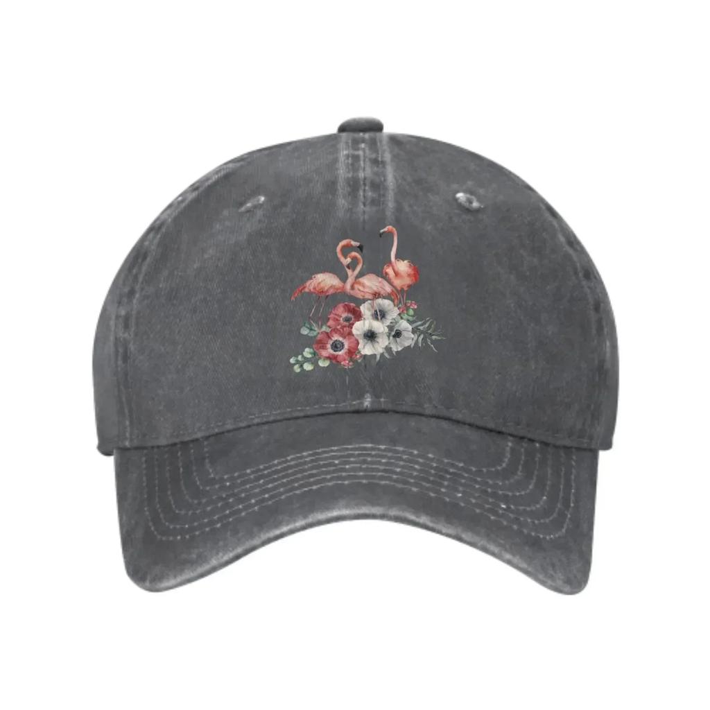 Flamingo Floral Print Baseball Cap Cotton Vintage Adjustable Casual Hat for Adults