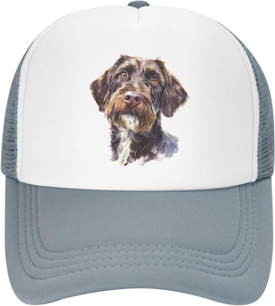 Drahthaariger Vorstehhund Griffon Hunde-Aquarell-Druck Mesh Trucker-Kappe Verstellbare Baseballkappe Lässige Snapback für Männer Frauen