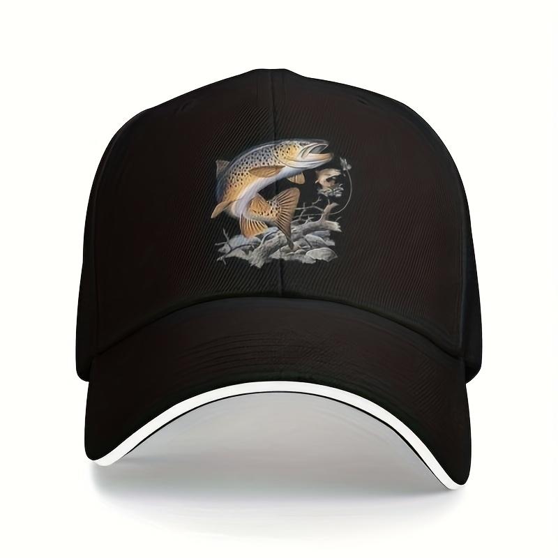 Bachforelle Springender Fisch Baseballkappe Unisex Polyester Atmungsaktiv Verstellbar Lässig Outdoor Angler Geschenk