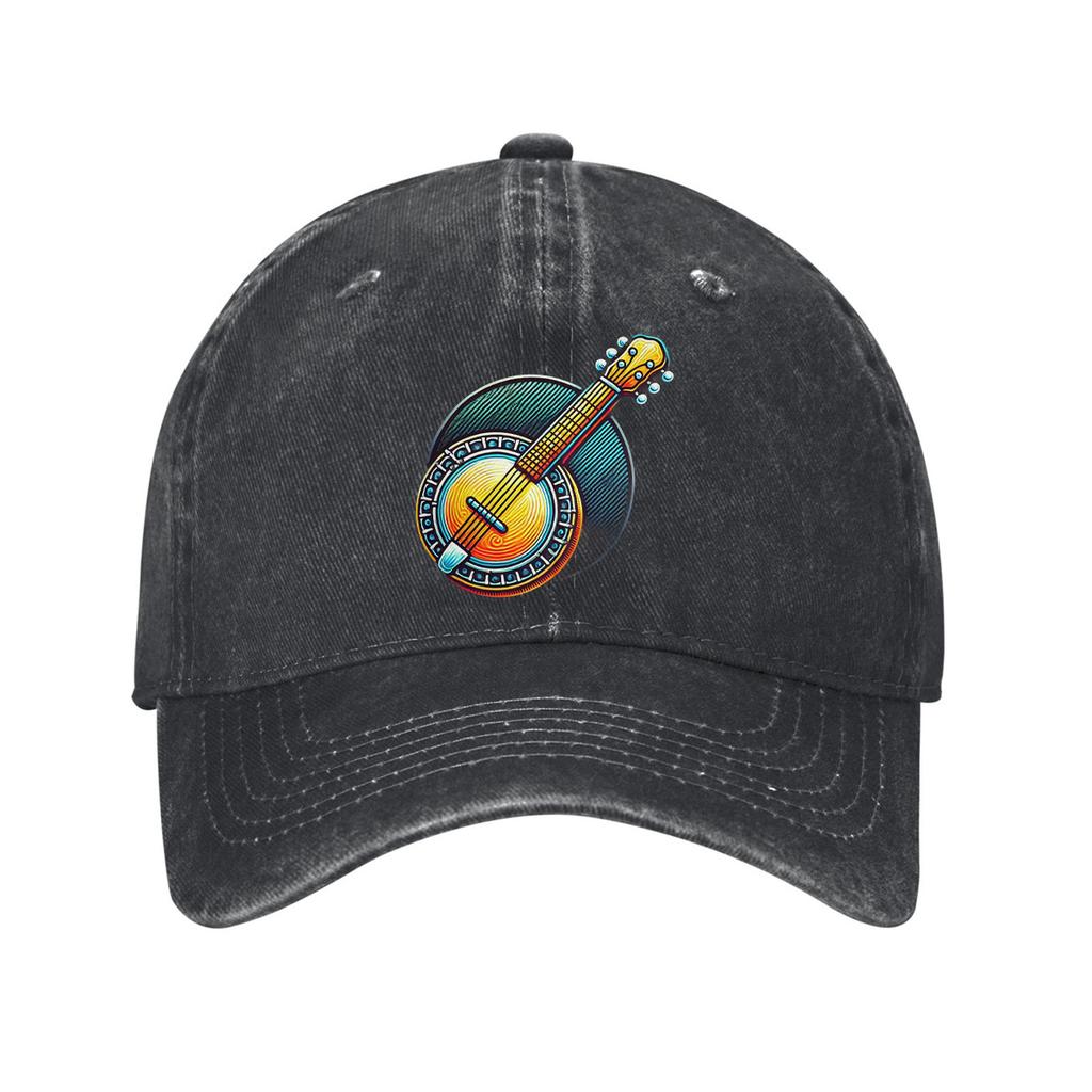 Colorful Banjo Music Graphic Baseball Cap Unisex Cotton Adjustable Denim Dad Hat Casual