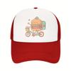 Burger Delivery Biker Trucker Hat Funny Food Print Mesh Back Adjustable Cap for Unisex Casual Outdoor