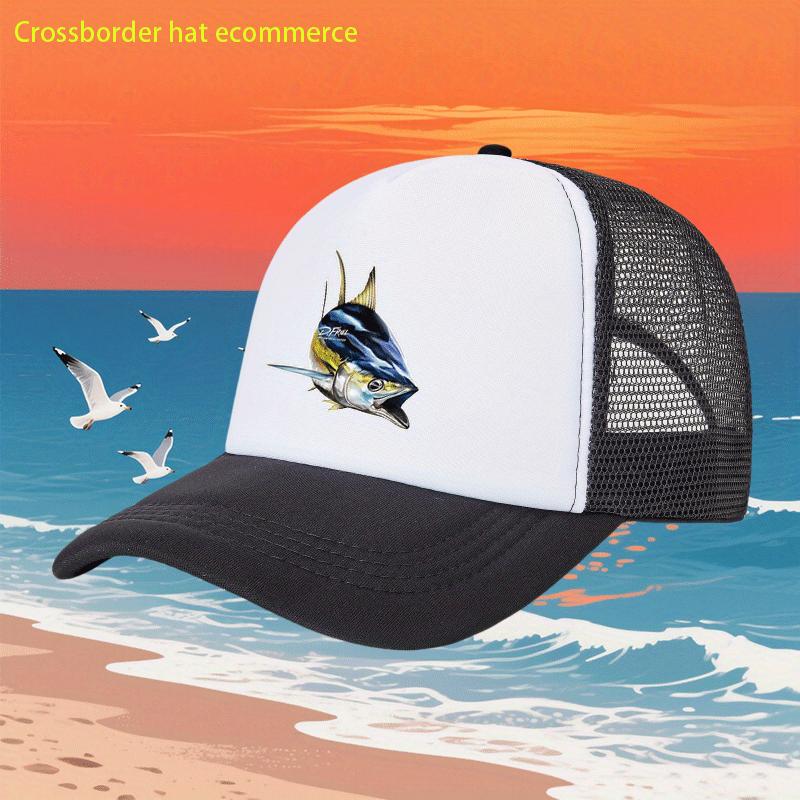 Tuna Fish Print Trucker Hat Breathable Mesh Baseball Cap Casual Outdoor Sports Adjustable Summer Hat