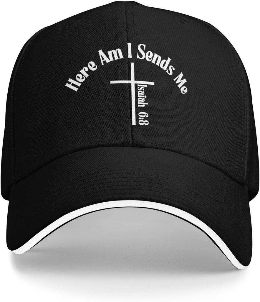 Hier bin ich Sendet mich Jesaja 68 Kreuz Grafik Trucker Cap Verstellbare Polyester Baseballkappe für Männer Frauen