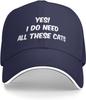 Yes I Do Need All These Cats Baseball Cap Polyester Adjustable Funny Dad Hat Unisex Hat