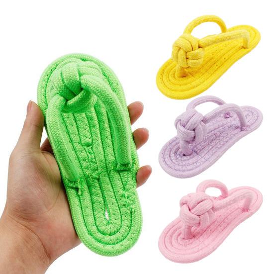 This durable cotton rope dog toy is designed to provide your pet with hours of fun and exercise while promoting healthy chewing habits. Shaped like a flip-flop slipper, it encourages active play and helps burn excess energy, reducing boredom and anxiety.