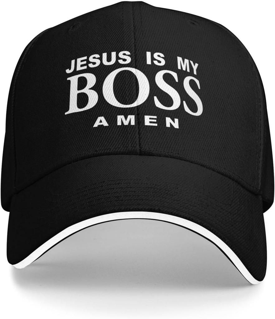 Jesus Is My Boss Amen Baseball Cap Polyester Adjustable Dad Hat Unisex Outdoor Sun Cap