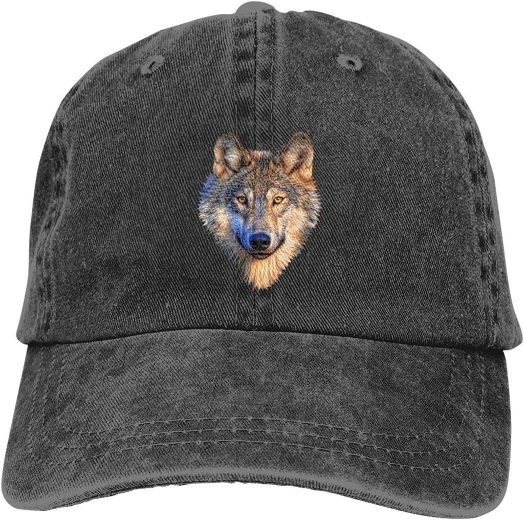 Wolf Head Graphic Print Washed Baseball Cap Cotton Adjustable Dad Hat for Unisex
