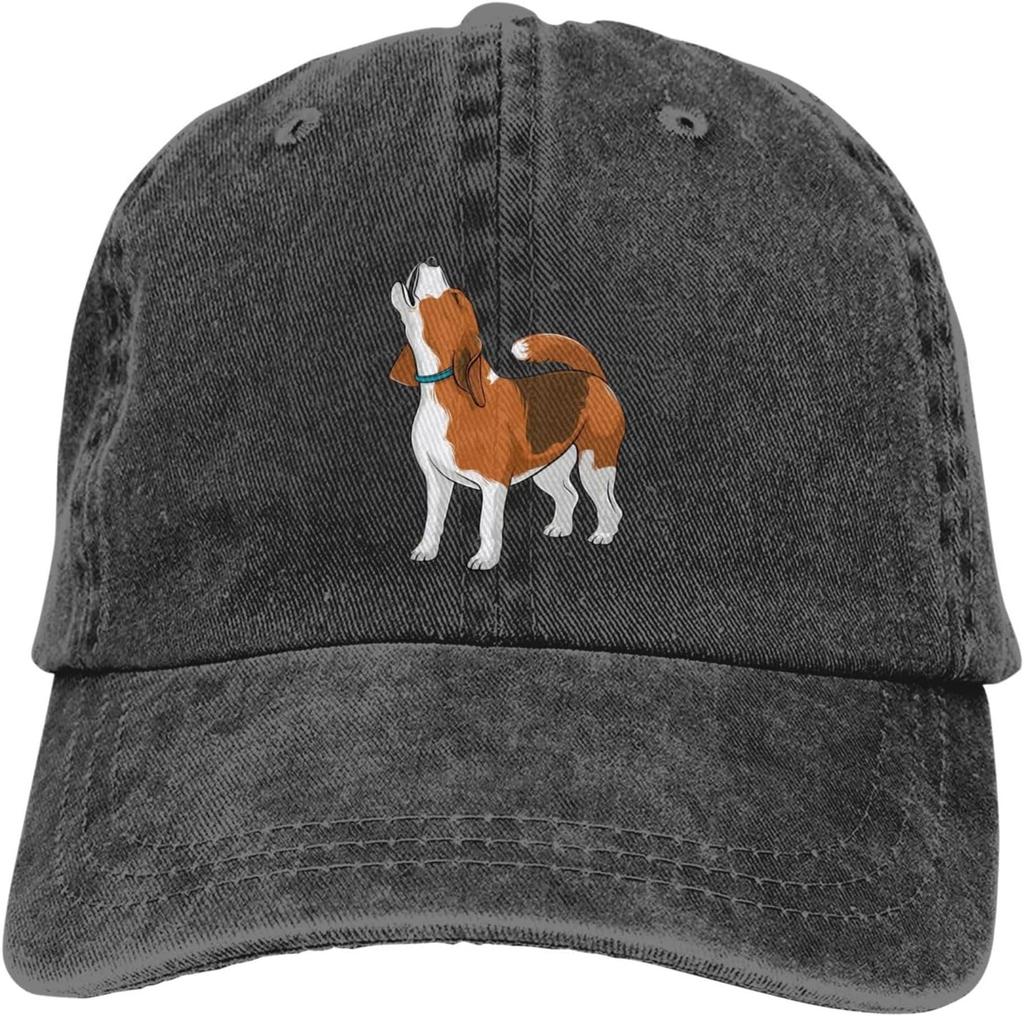 Howling Beagle Dog Embroidered Washed Baseball Cap Adjustable Dad Hat for Unisex Adults