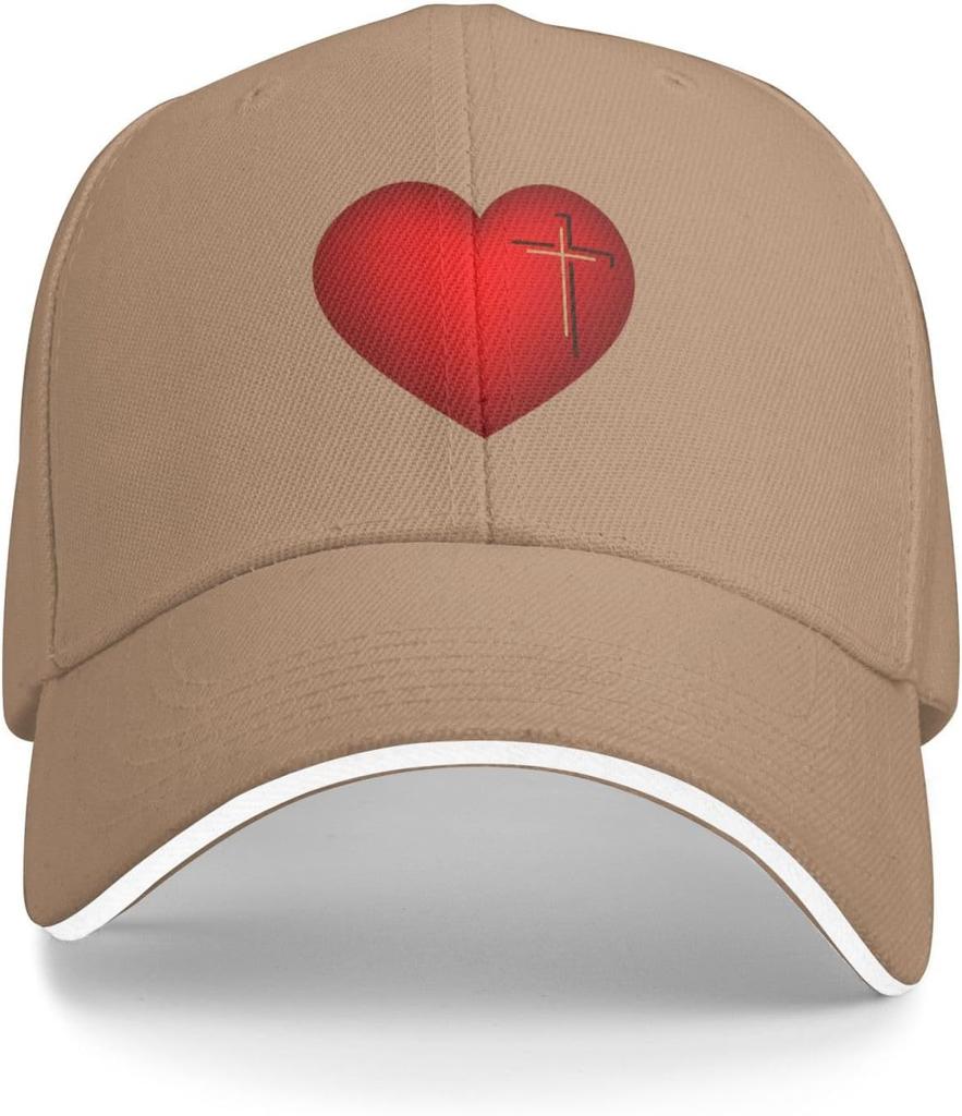 Christian Heart Cross Baseball Cap Polyester Adjustable Outdoor Sports Golf Hat for Adults
