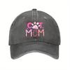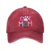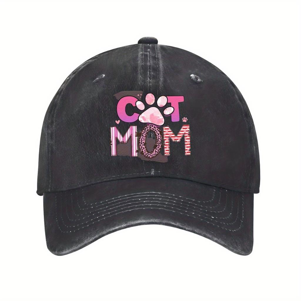 Cat Mom Baseball Cap Pink Paw Print Adjustable Polyester Casual Sun Protection Hat for Pet Lovers