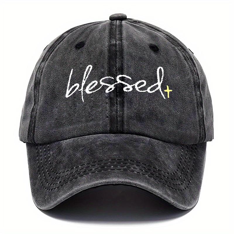 Blessed Embroidered Washed Baseball Cap Adjustable Dad Hat with Curved Brim for Fishing Outdoor Activities Casual Wear