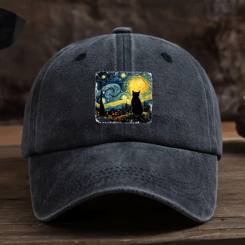 Unisex Waschbare Baseballkappe Verstellbar Van Gogh Schwarze Katze Muster Mütze Weich Retro Stil Kappe Geeignet für Jede Jahreszeit