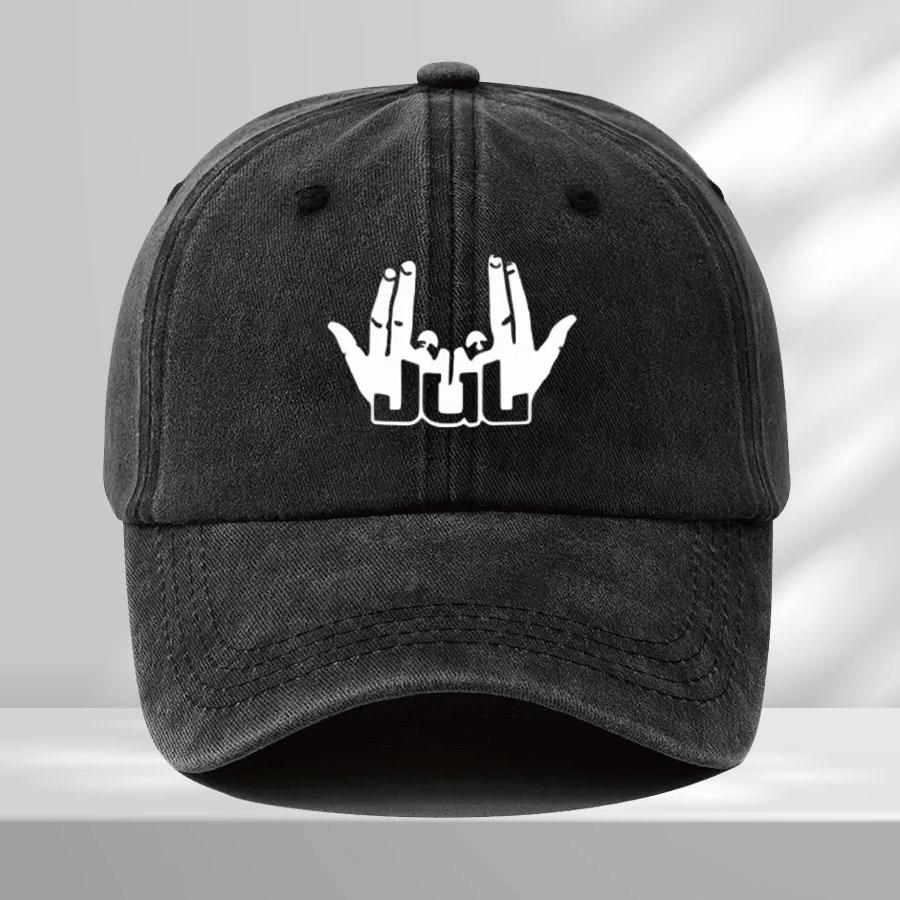 JUL Black Rock Hand Gesture Print Baseball Cap Adjustable Truck Driver Style Lightweight 100 Polyester