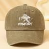 MenS Vintage Washed Baseball Cap with Bold Fish Graphic FISH ON Print BreathableAppropriate for Any Season