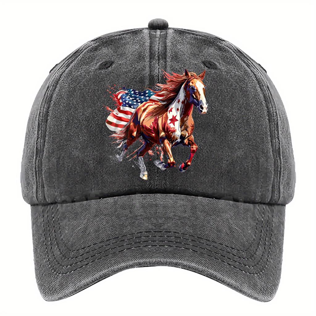 Damen Einstellbare Patriotische Galoppierende Pferde Amerikanische Flagge Baseballkappe Atmungsaktives Netz Mehrfarbige Optionen