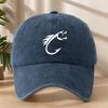 MAKEFGE Vintage Washed Soft Breathable Fishing Cap with Fish Hook Trout Print Outdoor Camping Hat Suitable for Fishing