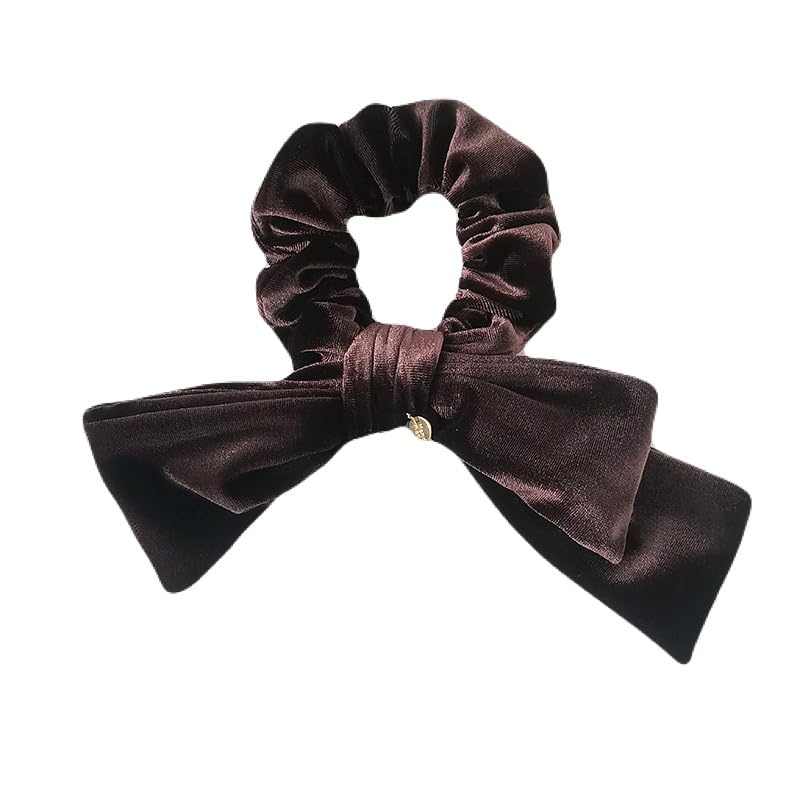 Avance Hair Velvet Hair Cute for Women Accessory, Ribbon, Tie, Scrunchie, Black, Brown, Cream, Adults, (Brown)