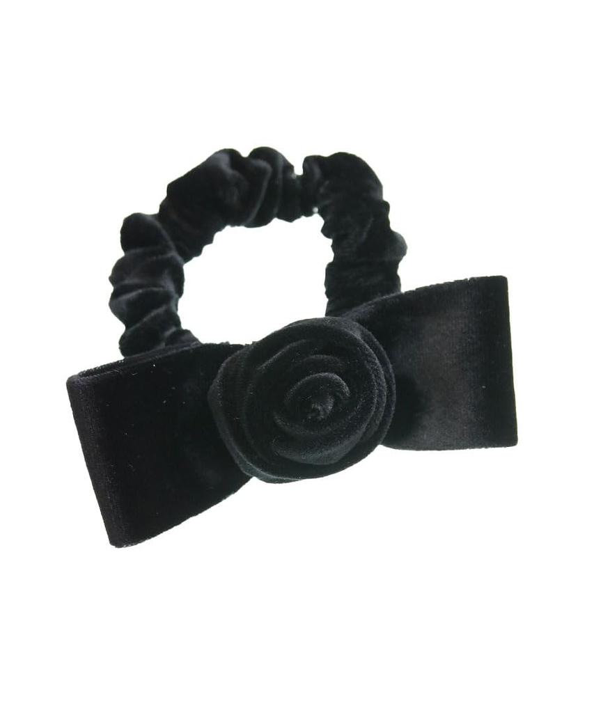 VINGTAINE Rose Scrunchie Hair Tie with Ribbon and Flower Design for Cute and Elegant Hair Velvet, Updos, Accessory, Gift, H7744-BK